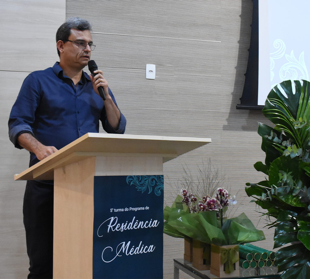 Diretor assistencial, ensino e pesquisa, Bruno Belezia fez a abertura da solenidade e destacou a importância da residência para o exercício da medicina. “A residência gera autonomia, independência e segurança aos novos médicos. Ela possibilita que a medicina seja exercida com qualidade, dedicação e compromisso com o paciente. A residência reforça que o paciente é o centro do cuidado e que a beira do leito é o local onde tudo acontece.”, declarou.