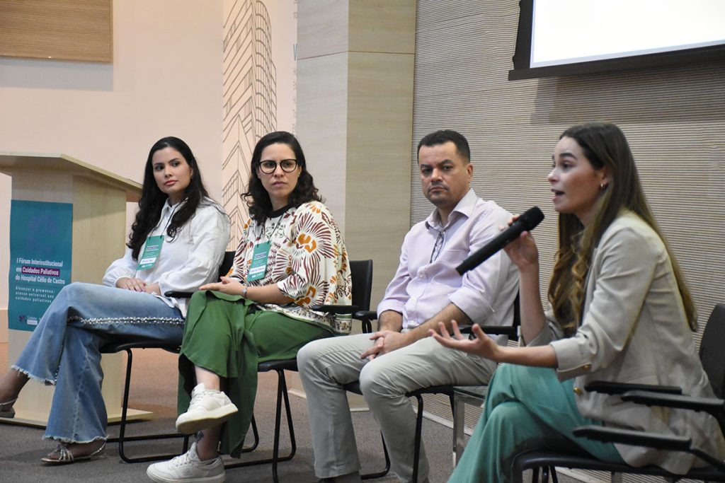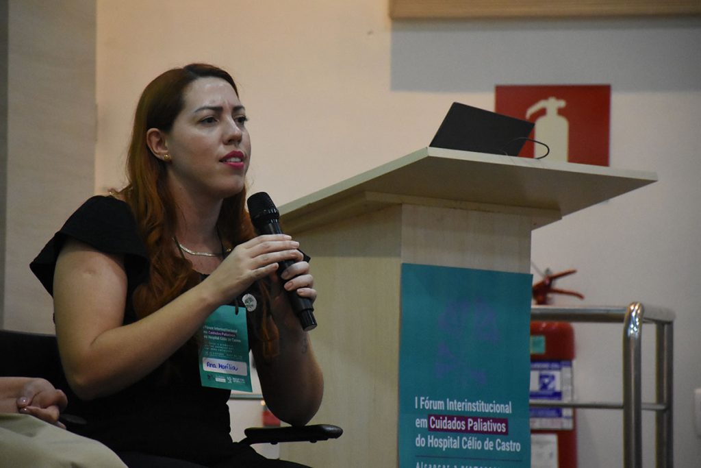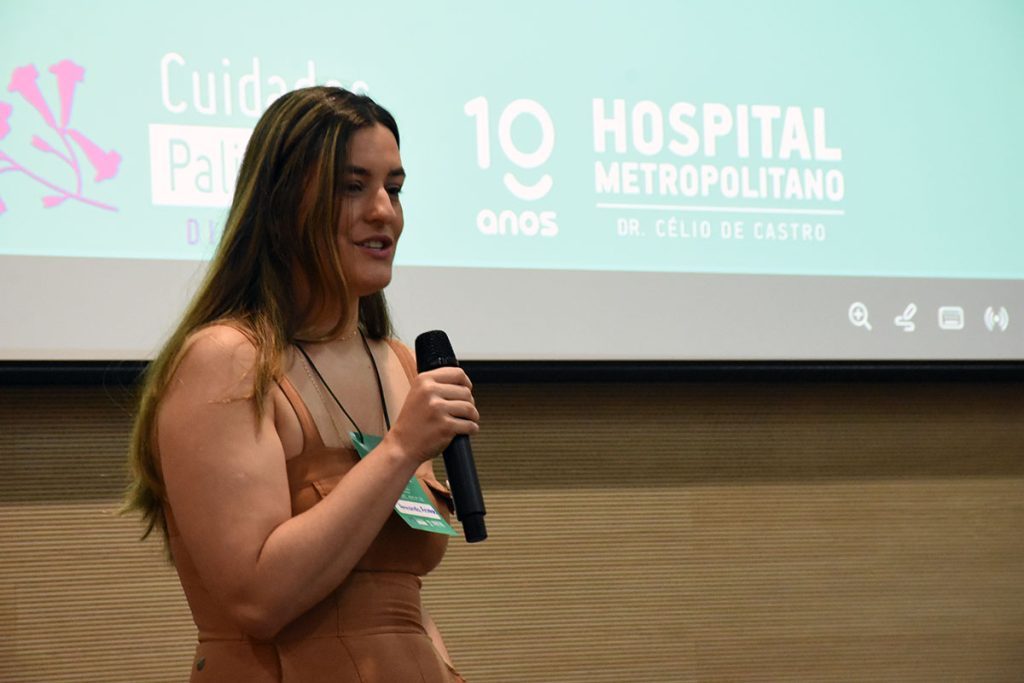 Na sequência, a enfermeira do Hospital Célio de Castro, Adriana Fernandes, a coordenadora do serviço de cuidados paliativos do Hospital Risoleta Tolentino Neves, Ana Ruganni, e a coordenadora do Programa de Residência Multiprofissional em Saúde do Idoso do Hospital Odilon Behrens, Laís Samara, compartilharam as experiências das instituições, a evolução do cuidado e os desafios que ainda persistem quando o assunto é cuidado paliativo.