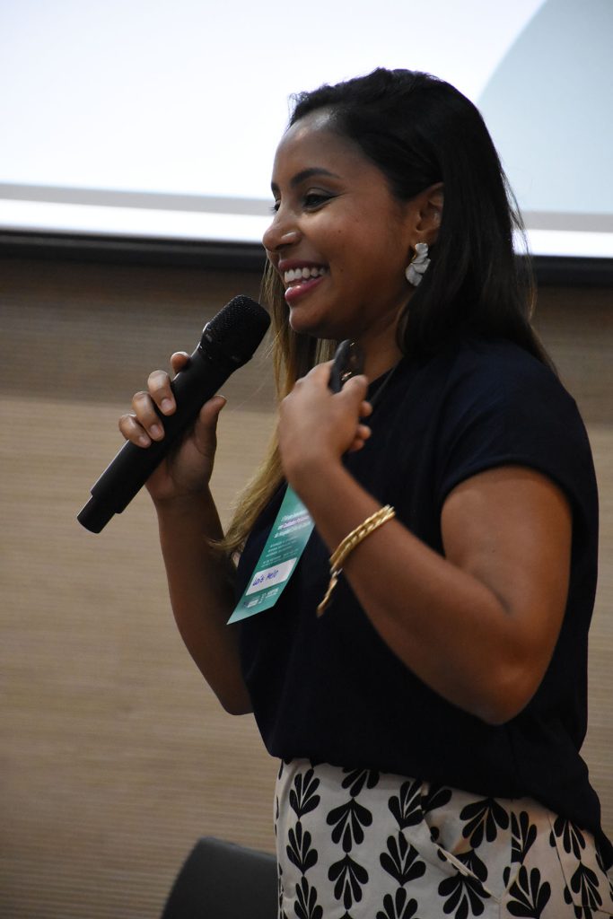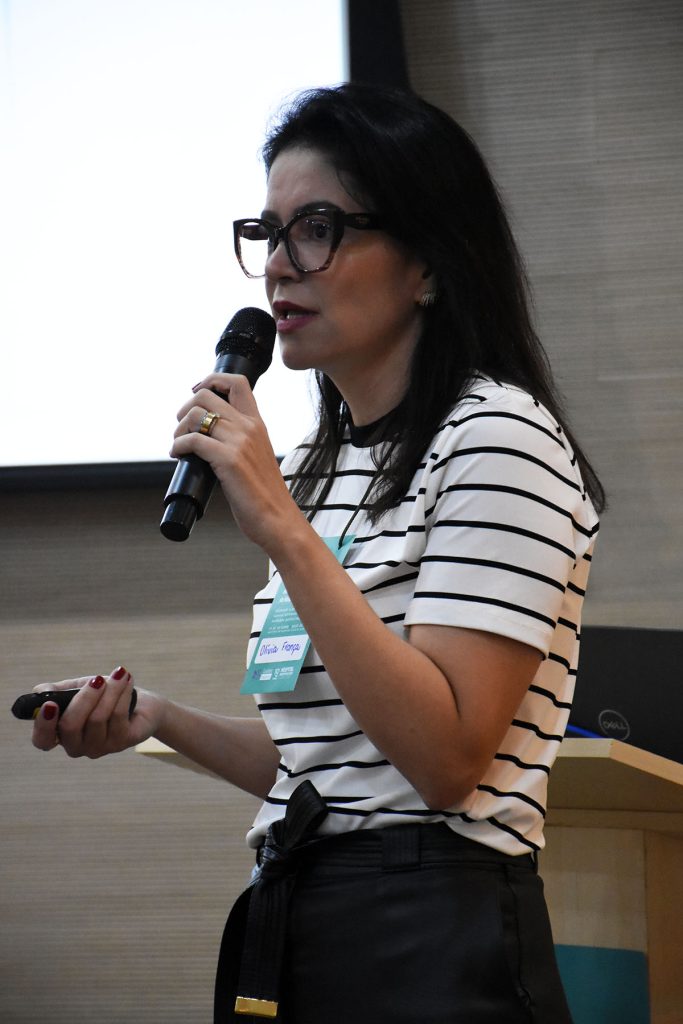 A palestrante convidou o público presente a pensar o quanto a sociedade tem se distanciado da vida em comunidade e se isolado em seus espaços físicos, o que é um desafio para viabilizar a experiência da comunidade compassiva.
