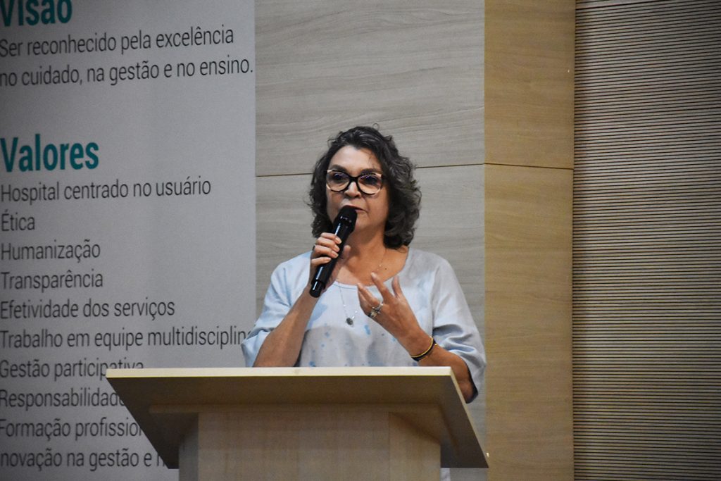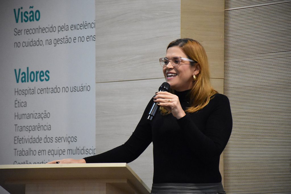 A abertura da cerimônia de conclusão do MBA foi realizada pela diretora executiva do Hospital Metropolitano Dr. Célio de Castro (HMDCC), Cristina Peixoto.